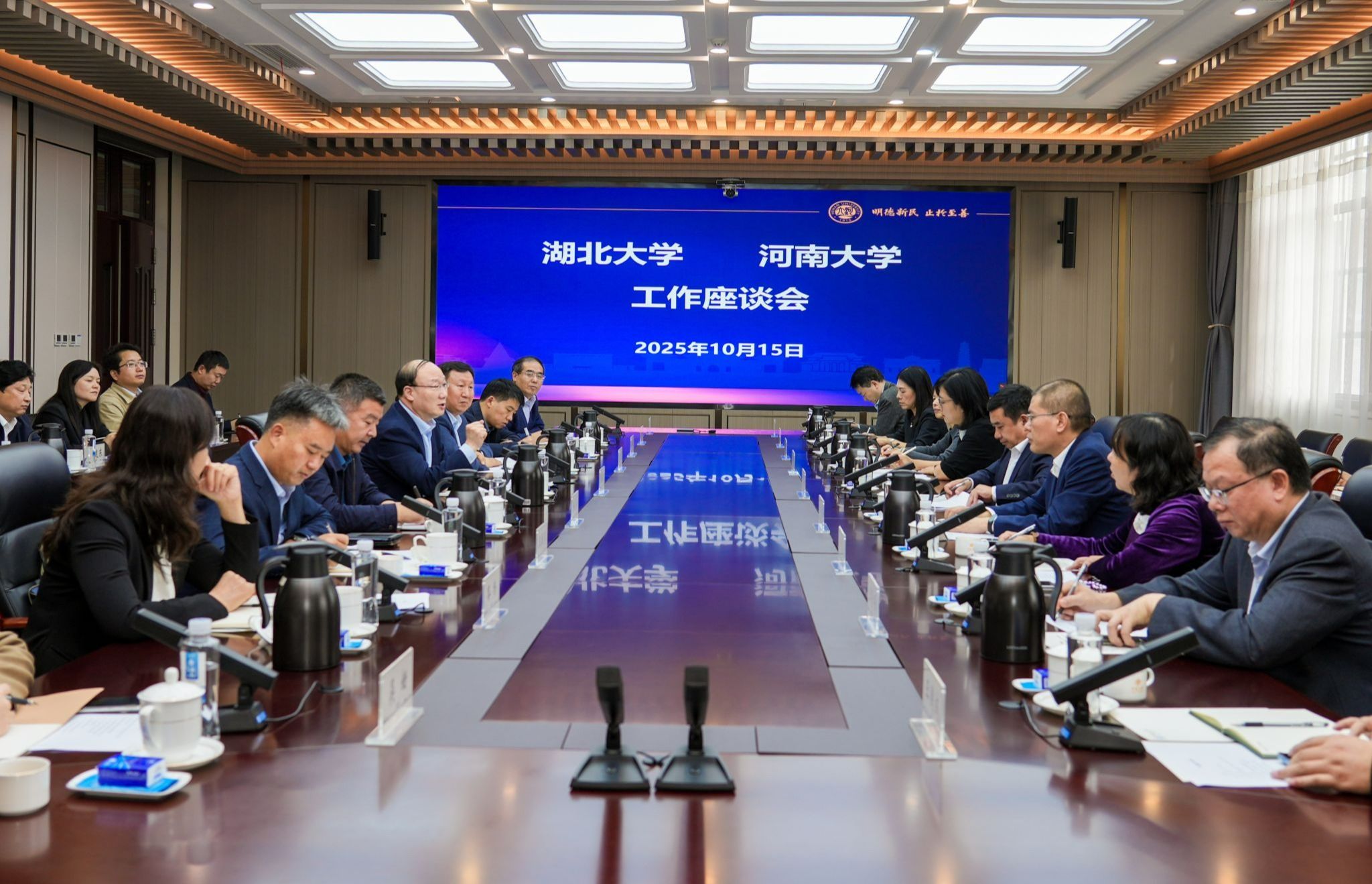 刘建平对河南大学近年来的快速发展表示赞赏。他介绍了湖北大学的办学历程、学科结构调整、科研创新和服务地方等方面的探索与实践。他表示,两校在发展历程、学科结构和办学使命上高度契合,面临着许多共性问题与挑战,希望以此次调研为契机,进一步增进了解、深化共识,推动双方在学科共建、服务社会、人才联合培养等方面开展务实合作,共同探索地方高校高质量发展的新路径。